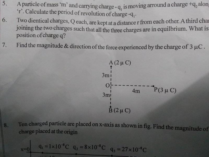 1. Find the magnitude and direction of the force experienced by the charge of 3microcoulombs.