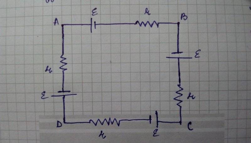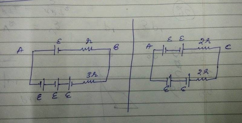 Four identical cells each having emf E and internal resistance r are connected in series to form a loop abcd as shown in figure (picture 1). Find potential difference across ab and ac.
