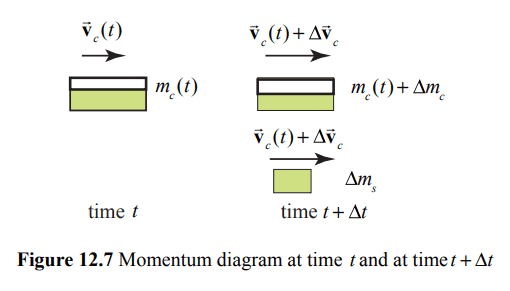 ##\Delta \vec P(t ) = Δm_sv_c(t) +\vec F.\Delta t##.