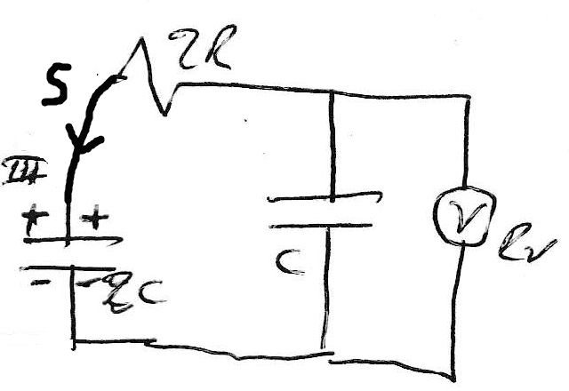 - The initial charge in the C capacitor: QC = 0 coulombs
