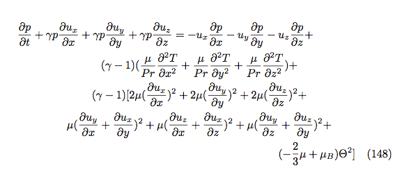 I derived the energy equation for compressible flow in terms of pressure p from the governing equation in terms of the total energy density e (using the perfect gas assumption and assuming constant viscosity), but I am not sure if I did it correctly. I post it here, please tell me if it's right, or suggest me some useful references I could consult. Thanks a lot!