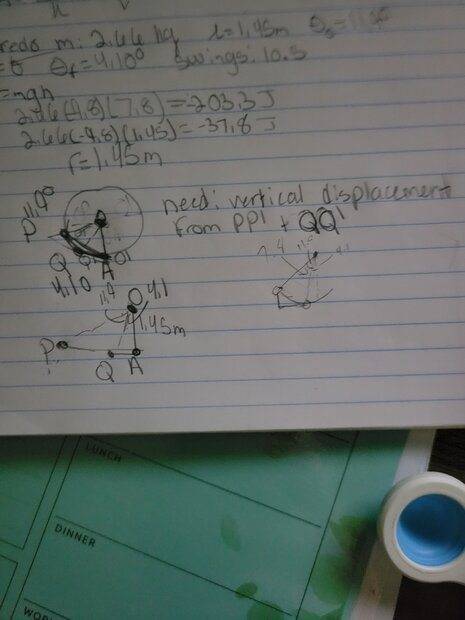 - A 2.66-kg rock is attached at the end of a thin, very light rope 1.45 m long and is started swinging by releasing it when the rope makes an 11.9 ∘ angle with the vertical. You record the observation that it rises only to an angle of 4.10 ∘ with the vertical after 10.5 swings.