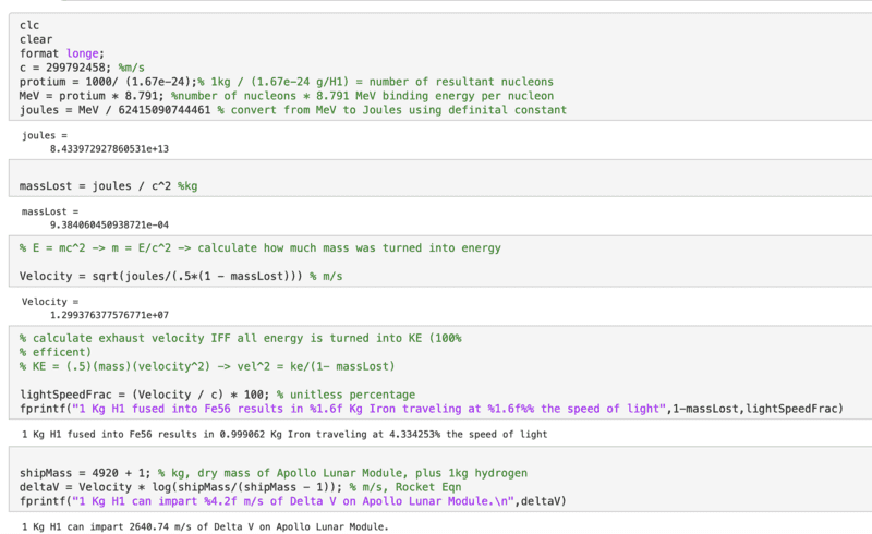 If it is 100% efficient at turning protium into iron. Hopefully the cacophony of other posters balking at that demonstrates the folly of assuming that such an engine could be constructed.