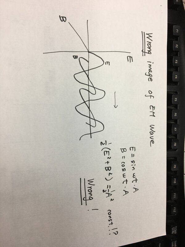 EM wave is usually illustrated as https://en.wikipedia.org/wiki/Electromagnetic_radiation#/media/File:Onde_electromagnetique.svg .