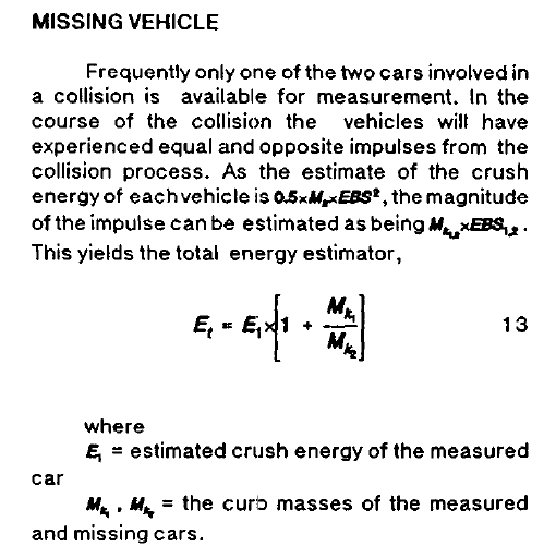 When in a two car collision only one of the two cars "Crash energy" is known, the total Crash energy of the two cars can be obtained if the relationship between the masses of the two cars is known. That formula is shown in "SAE Technical Paper 920604: Wood, D., Collision Speed Estimation Using a Single Normalised Crush Depth-Impact Speed Characteristic".
