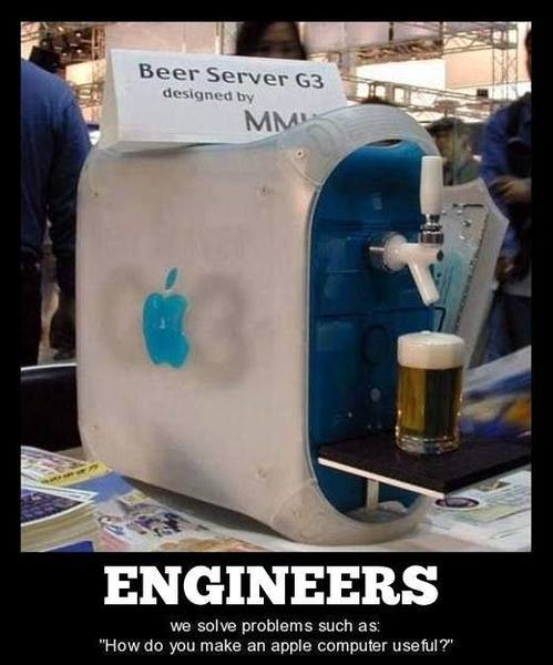 The discussion revolves around humorous takes on Apple products, particularly desktops and their unconventional uses. Participants share light-hearted comments and jokes about Apple computers, including references to beverages associated with them.