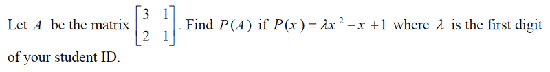 disregarding the digit ,, he's giving me P(x) and want P(A) but A is a matrix ,, should I get the determinant of A then apply it in the equation ?? or it has some idea I need to know ??