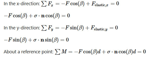 • One participant describes the setup involving an elastic deformable body and a rigid body, asking for confirmation on the correctness of their equilibrium equations.