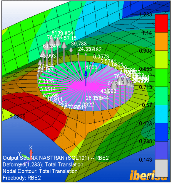 However, wouldn't there be an additional boundary condition forcing the end of the pink beam to keep its shape because it's fixed to a rigid body?