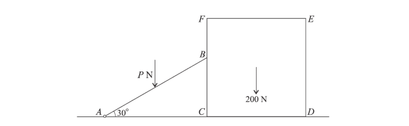 A uniform solid cube, of edge 1m and weight 200N, rests on a rough horizontal plane. A light rod AB