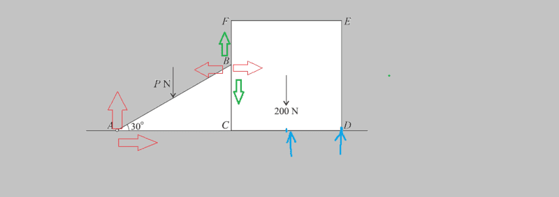 I am not sure about whether the forced shown in green should exist or not. Theoretically speaking, they should not ! But if i think it intuitively, the only way a force "P" acting on the rod can cause the cube to reach the point of turning over (toppling over) is that there is friction (shown in green) that would cause torque. (Am i correct) ?