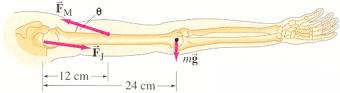 (b) Calculate the magnitude of the force FJ exerted by the shoulder joint on the upper arm.