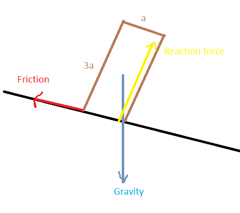 The line of action of the force of gravity points outside the base of the cube AND the force of friction is large enough to prevent the cube from sliding?