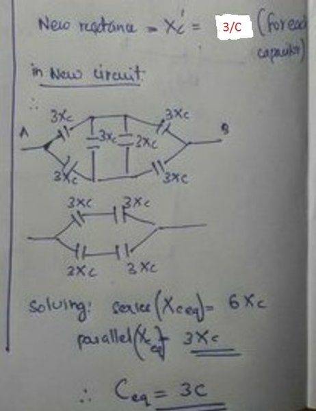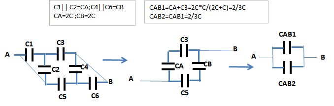 - There is a claim that the equivalent capacitance could be (2/3) * C, but this is met with skepticism and requests for clarification.
