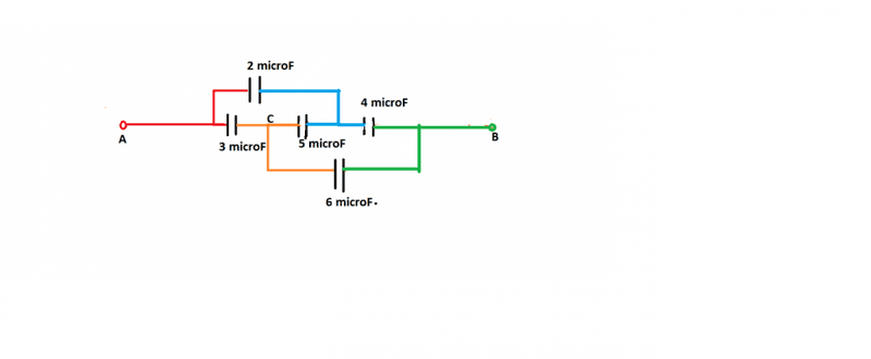 Find the equivalent capacitance of the combination between A and B in the figure.