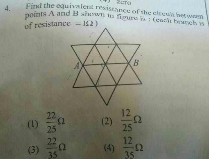 I came across a similar problem (hope I am not wrong). Please see the attached picture . I do not have the answer key . Could you please confirm whether you get 22/35 Ω as the answer .