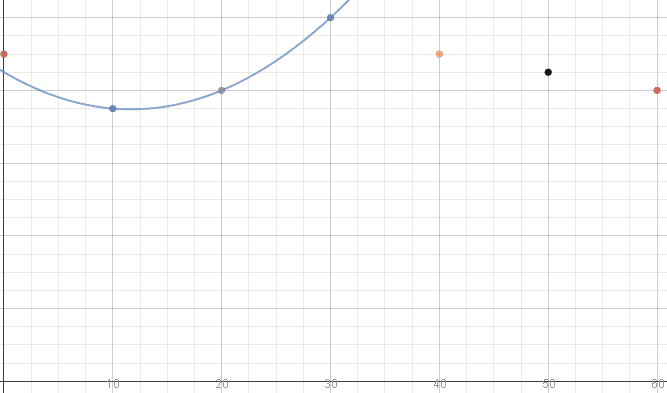 and from v(10)=75 and v(30)=100 we have a difference of 25 so presume we can the slope from this for instantaneous accelaeration at 20 sec