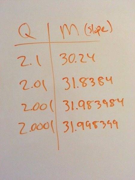I do this for the rest of them and get correct answers according to the online "WebAssign" website. Now I'm stuck on (b) "Estimate the instantaneous velocity when t = 2." You can look at my picture, I tried plugging in values near 2 like 2.1 and 2.01, etc, into [itex]y=48t-16t^2[/itex] What am I doing wrong? So as I get closer to 2 I get closer to the slope of 31.999 which then you make an educated guess (by rounding) and get 32. But this is wrong. I don't know why? Also, I heard there is another method for finding average velocity, my book doesn't have it--anyone know it? Much appreciation.