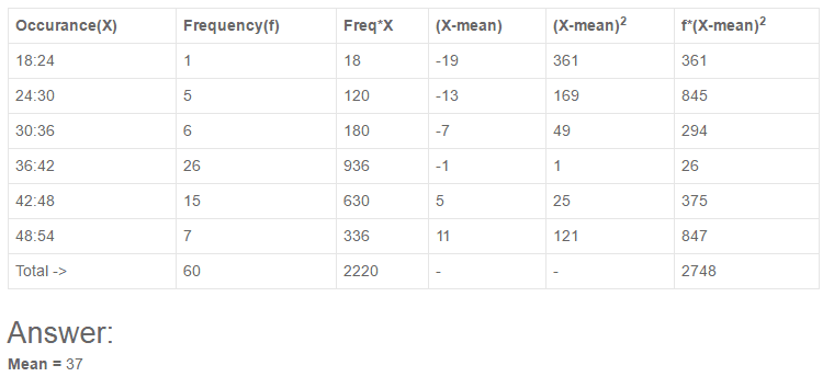 | Class interval | Mid value(x) | Deviation(d) | frequency(f) | fd |