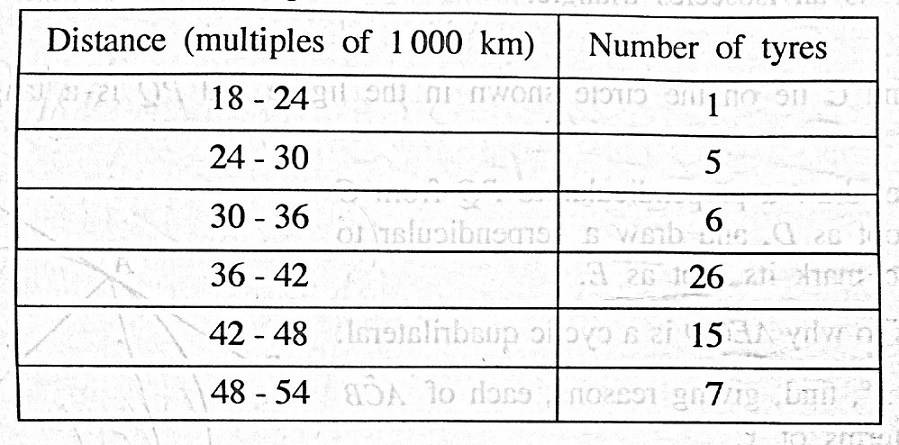Data obtained from a survey conducted by a tyre manufacturing company, using a sample of 60 tyres of a certain category, on the distance tyres ran before they became unsuitable for further use.