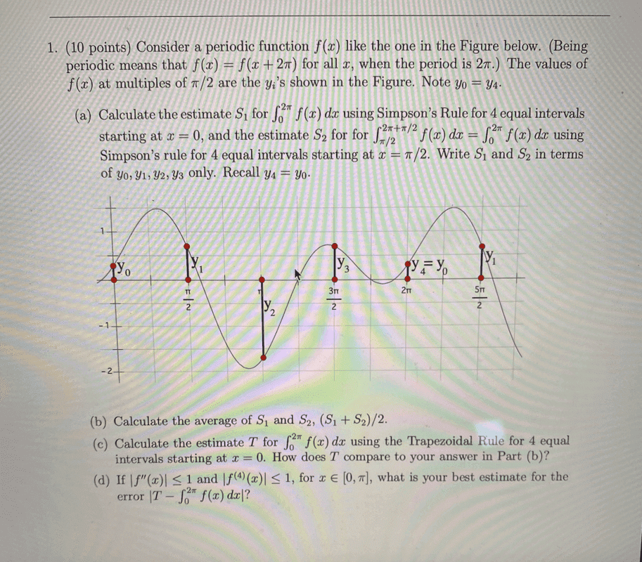 a) Simpson's Rule, starting at two different locations in the periodic function