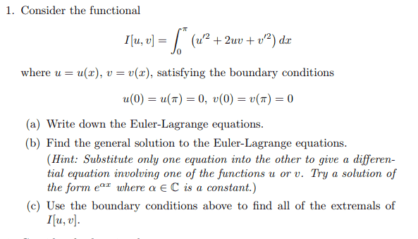 I'm not sure if I can use the boundary conditions to find the extremals with this? it doesn't look like it would simplify down to a tidy solution?