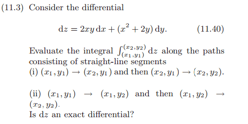 The discussion centers around evaluating a line integral along different paths in a multivariable calculus context. Participants are attempting to understand the implications of the integral's path dependence and whether the integral represents an exact differential.