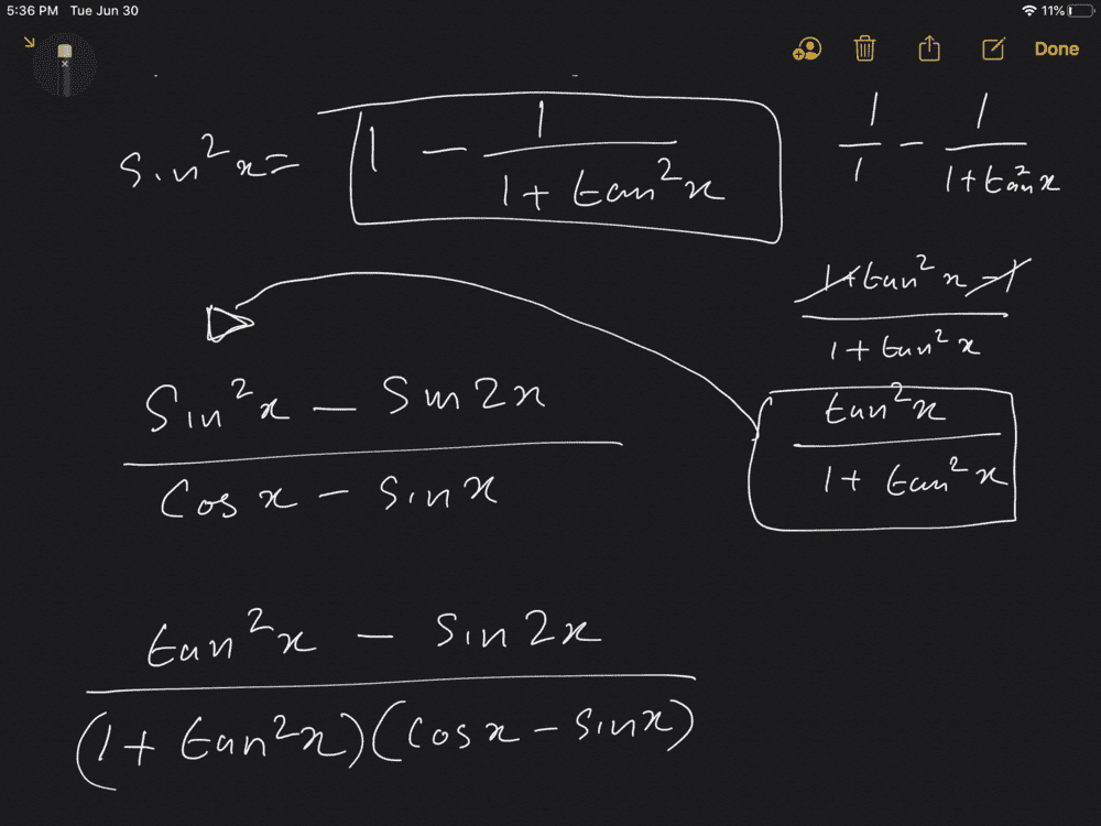 That result is incorrect. Presumably you are multiplying the numerator and denominator by tan x , but you didn't distribute tan x through the denominator. Distributing correctly gives:(Tanx(sinx-2cosx)/(1-sinx)