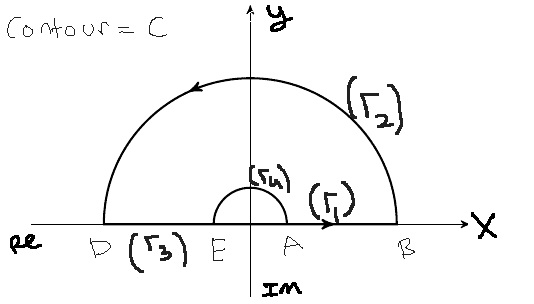 $$\oint_{\Gamma_3} f(z) dz = \int_{-R}^{-\epsilon} f(x) dx$$