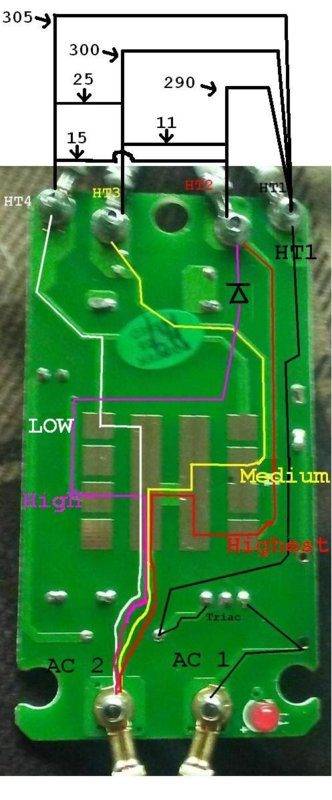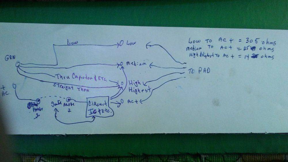 I am working on used device works on low not the three higher levels. I drew out circuit so I could see how it works.