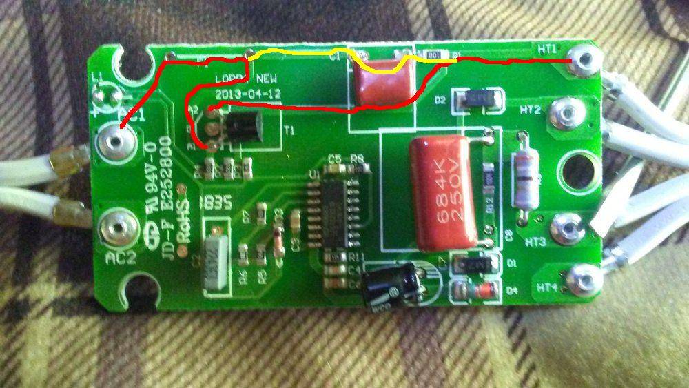 The ground goes to three of the four wires to the pad fourth wire is ac positive which goes thru some thing like scr comes in on a1 and goes out on a2 and controlled by gate what I am wondering is if you use jumper wire from a1 to a2 this will bypass the IC and associated parts then positive goes to pad and switch sends grounds to different wire on pad disabling the 2 hour auto off feature what I don'r know is if the ic could control how hot or how much current passes thru? Also the a1 to a2 must pass current or it would not work in low. Some say four wired units send signal back to controller but all four wires on mine are connected with different ohm's between wires.