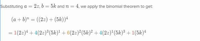 The discussion centers on expanding binomial expressions, specifically focusing on the multiplication of constants and variables. The user initially calculates 4(8z^3)5k, resulting in 32(z^3)(20k), but seeks clarification on how to arrive at the final answer of 160z^3k. It is established that the multiplication of constants does not involve addition, and the correct interpretation of the expression is crucial for accurate simplification.