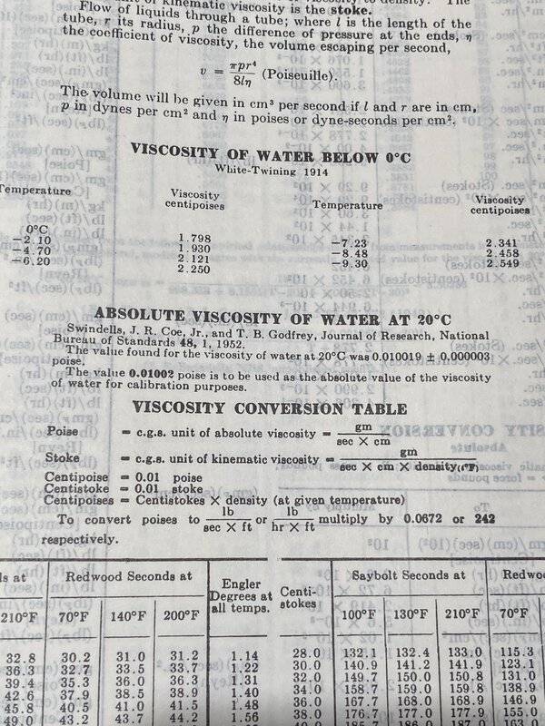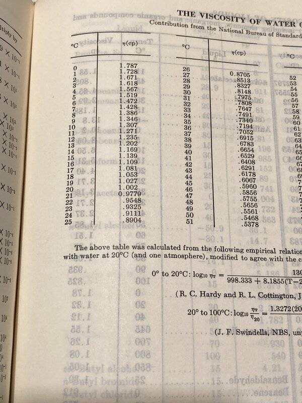- A participant mentions the need for the viscosity of water at 0°C and suggests using a specific reference for this value from the CRC handbook.