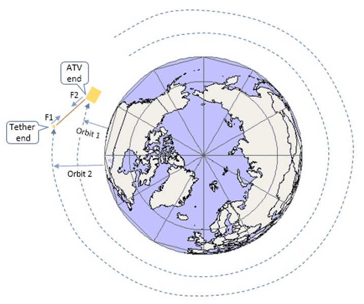 Participants express a mix of agreement and disagreement regarding the mechanics of the tether system, the forces involved, and the feasibility of the proposed methods for de-orbiting. No consensus is reached on several technical aspects, including energy requirements and the stability of the tether under operational conditions.