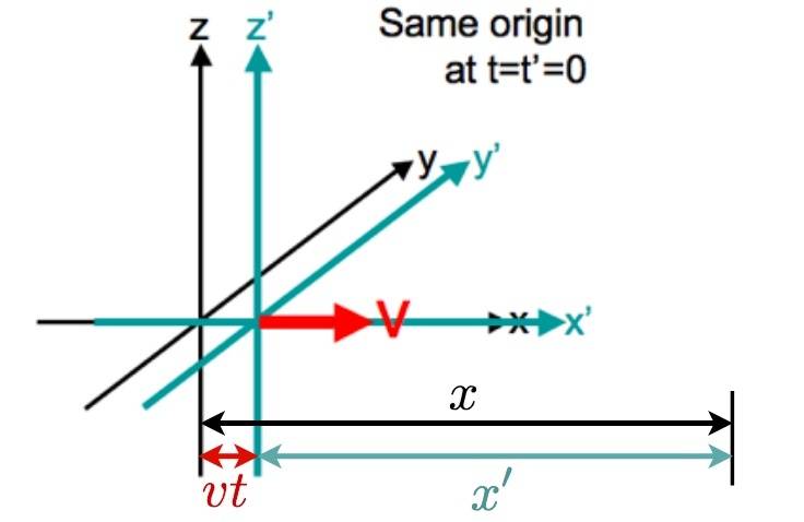 The transformation is described as x'=x-vt, where x' is moving relative to x. However, in the diagram I've attached, x' is ahead of x ; so why is the transformation described with -vt? Is this because we're calculating x' with regards to frame a, which is "traveling" in the opposite direction to x'and therefore x' sits to the negative of x=0?