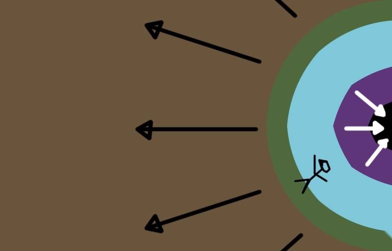 3, a place where the force from the dense "space" center of the sphere pulls objects.