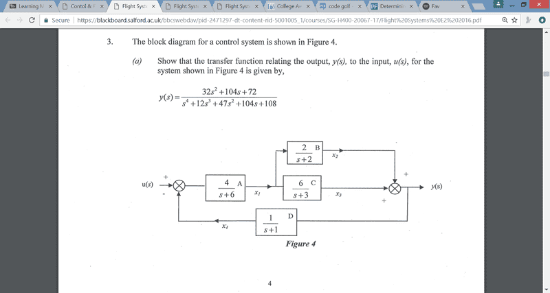 The question asks me to express the system shown in the image in state-space form, firstly by using the transfer function which was fine but the second part asks to express in state-space form by using the components A,B,C,D as the states x1,x2,x3,x4