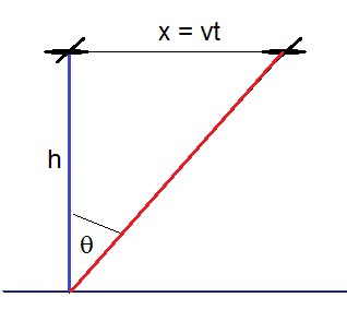 The directed beam from a small but powerful searchlight placed on the ground tracks a small plane flying horizontally at a fixed height h above the ground with a uniform velocity v. If the search light starts rotating with an instantaneous angular velocity ##\omega_0## at time ##t=0## when the plane was directly overhead, then at a later time t, its instantaneous angular velocity ##\omega(t)## is given by?