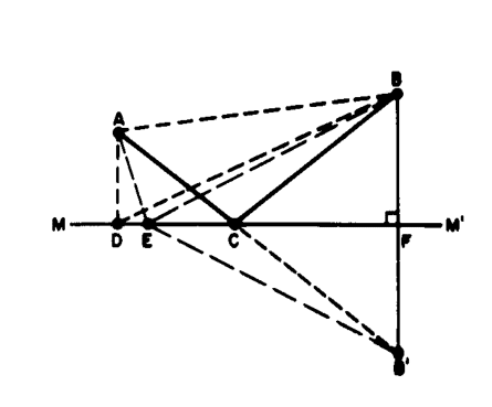 So he is discarding the straight line AB and saying that instead light travels from A to B passing through C... a result I can't just believe.