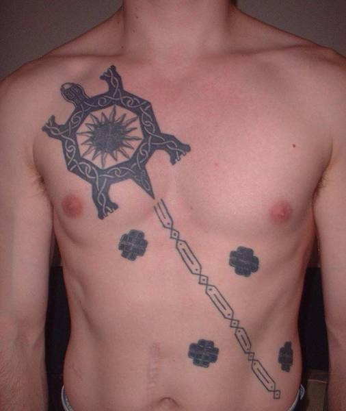 $1 = 4 - 3 = 4 - (7 - 4) = 2(4) - 7 = 2(11 - 7) - 7 = 2(11) - 3(7)$ so that $a = -3, b = 2$.