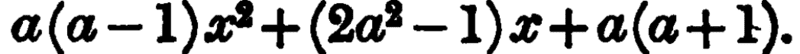 - ##\text{Resolve into two or more factors}## : ##\quad\boldsymbol{a(a-1)x^2+(2a^2-1)x+a(a+1)}##