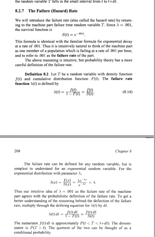 - One participant suggests that the failure rate can be expressed as f(t)/(1-F(t)), where f and F represent the probability density function (pdf) and cumulative distribution function (cdf) respectively, and prompts for the computation of these functions for a uniform distribution.