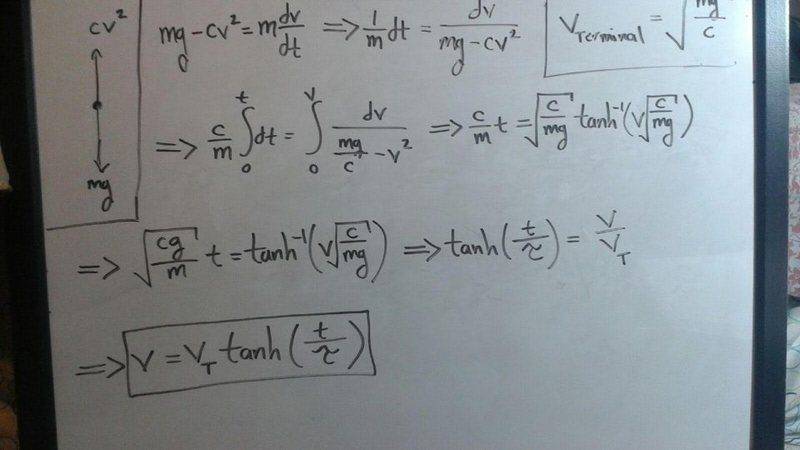 Consider a particle in a gravitational field that is also subject to a resisting force proportional to the velocity squared ( Fdrag = + or - cv2).