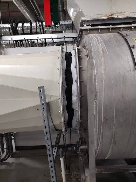 One of your pictures seem to show a solid bridge by-passing the isolation of duct-fan provided by the canvas connection.