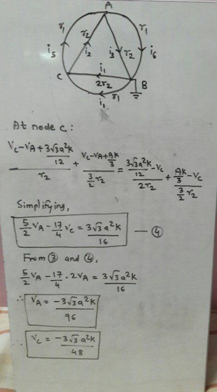 I did them all by hand, by the algebraic substitution method. Your 4 equations and 4 unknowns was kind of easy. My 6 equations and 6 unknowns was painstaking, and even more difficult was isolating the error which I found=I had put a minus on the constant ## N ## instead of the plus sign when I did an algebraic step. (When I solved your 4 equations and I had a slightly different answer, I had to then double-check both the solution I got to your 4 equations as well as my 6 equations=and there I found the incorrect ## r_2 ## in your diagram, but they still didn't agree. After another hour of looking, I found where I had reversed the sign on the ## N ## in the equations that I had. Finally, with those 2 corrections, everything was in agreement).timetraveller123 said:oh you my bad