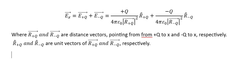 Ps. I'm thinking about point charges. When you have two charges: +Q and -Q, and you want to find the electric field at point x. You need to put both +Q and -Q in an equation:
