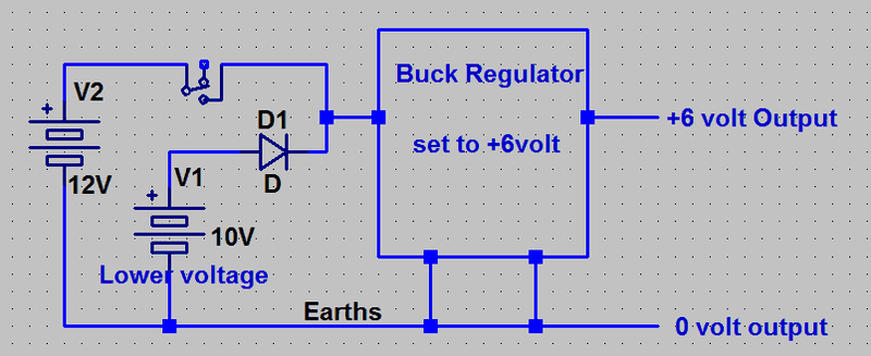 I have two DC input power,s one is 10V/2A and the second is 12V/2A . I want to be able to switch between the two without interrupting the function of my circuit . meaning without my circuit going off in between the switch.
