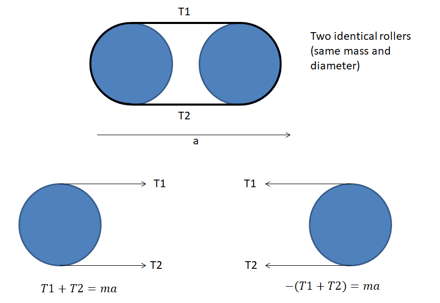 - Another participant suggests that if equal forces are applied to both rollers, the belt may be unnecessary, indicating a potential misunderstanding of the system's mechanics.