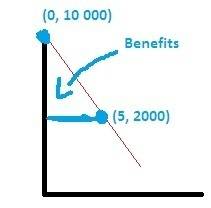1) Linear line is drawn with both points, i.e. (0, 10 000) and (5, 2000) on it;