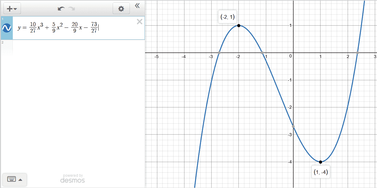 Bob123Bob said:f(x) = ax^3 + bx^2 + cx + d min(1, -4) max(-2, 1) find a,b,c,d